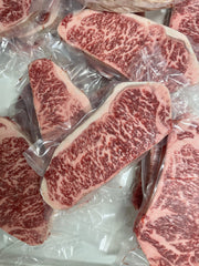 Located directly behind the rib section, our New York Strips are cut from the short loin. The Strip steak also known as “New York Strip” are known for its balance of marbling and tenderness. Each of our strips are packed full of flavor and require very little seasoning if any to bring out the taste of Wagyu. Just salt would work!